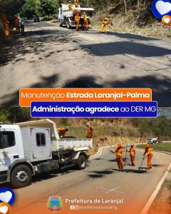 Estrada Laranjal-Palma A Administração 2025/2028 agradece ao @dermg.oficial – Departamento de Estradas de Rodagem de Minas Gerais (DER) – pelos serviços de manutenção da estrada